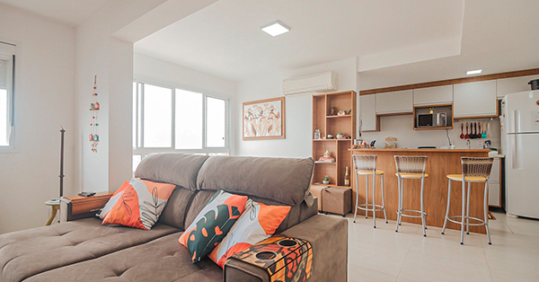 Apartamento no Cristal com 2 Dormitórios, Banheiro social, Sala, Cozinha americana, Área de serviço, semimobiliado, 3 splits, 59.35m² privativos, 1 Vaga.