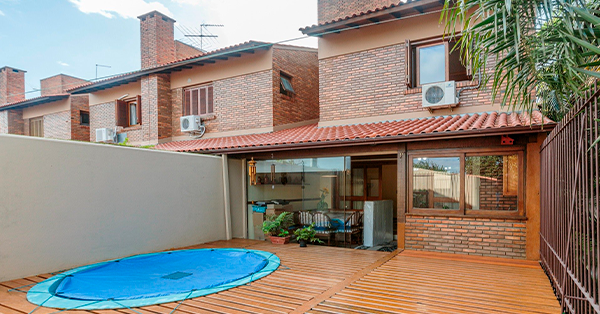 Casa Residencial no Lagos de Nova Ipanema com 2 Suítes, sendo uma com Varanda, Living integrado com a Cozinha e a sala de jantar, Espaço Gourmet com Churrasqueira e Parrilla, Pátio com Piscina, Rooftop com Vista, Lavabo, Semimobiliada, 93m² privativos, Vaga.