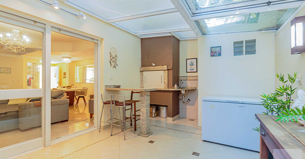 Casa Residencial em Ipanema com 3 Dormitórios, Suíte, ensolarada, ventilada, com quintal, piscina, 246m² de área privativa, sala de estar com lareira, lavabo, cozinha planejada, churrasqueira, água quente, área de serviço, armário embutido, split, sacada, 3 vagas.